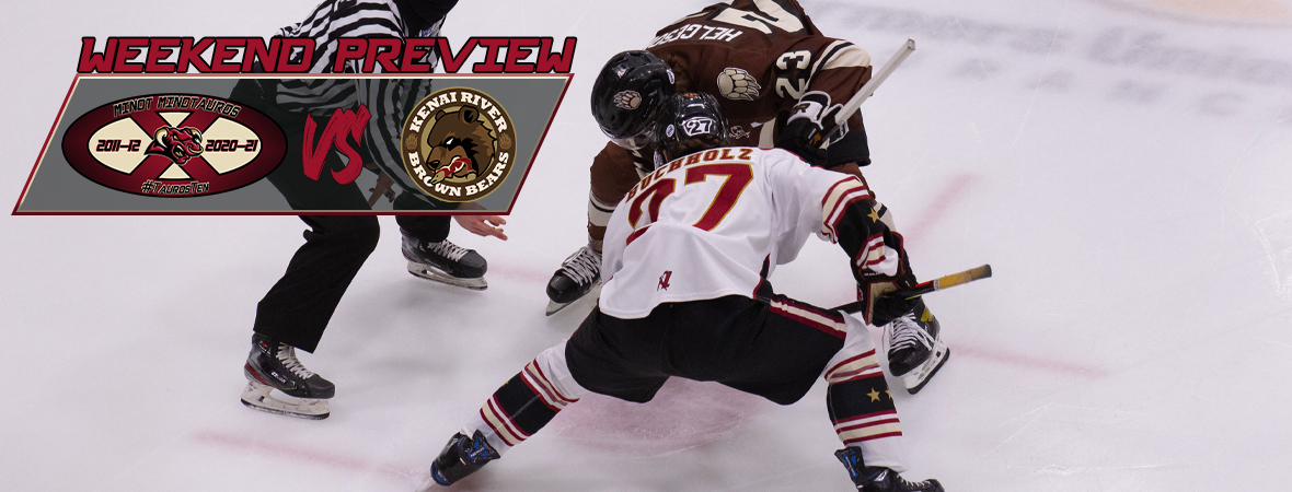 Minot, ND – For the first time since early December the Tauros play games on consecutive weekends as the Kenai River Brown Bears come to Minot. The Tauros will have their shortest commute ever to road games as they will technically be the away team this weekend with the vagabond Brown Bears playing as the home team. Covid has forced both the Brown Bears and their Alaska based brethren the Fairbanks Ice Dogs to move to the lower 48 this season. Both had set up shop in Minnesota, but due to Covid restrictions the Brown Bears have elected to play some of their “home” games at their opponent’s building.